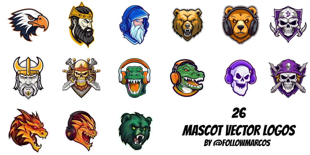 You'll get 26 vector mascot logos in SVG format.